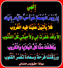 ﻭﻓﻲ يوم ﺍﻟﺠُﻤﻌﺔ، ﺍﻟﻠﻬﻢ ﺍﻛﺘﺐ ﻟﻲ ﺗﻐﻴﻴﺮﺍً ﻟﻼﻓﻀﻞ ﻓـﻲ ﻧﻔﺴﻲّ ﻭﺣﺎﻟﻲ ﻭﺣﻘﻖ ﻟﻲ ﻣﺎ ﺍﺗﻤﻨﻰ ﻳﺎﺭﺏ ﺍﻧﻲ ﺍﺳﺘﻮﺩﻋﻚ ﻛﻞ ﻣﺎ ﺍﺧﺸﻰ ﻓﻘﺪﺍﻧﻪ ﻓﺎﻧﺖ ﺧﻴﺮﺍﻟﺤﺎﻓﻈﻴﻦ